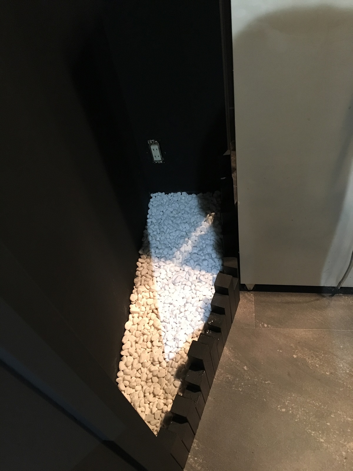 因みに元は居酒屋、リニューアル後はお好み焼き店に。苦労した点は狭いカウンターにお一人様用鉄板を配置することでした。内装の壁は、店主希望の朱色と黒。外部は縦格子を配してスタイリッシュに仕上げました。